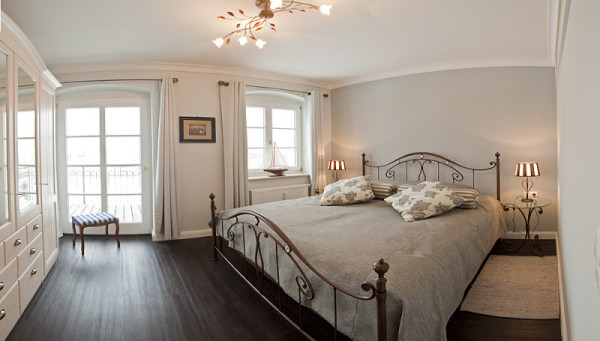 Schlafzimmer mit Balkonzugang und Meerblick